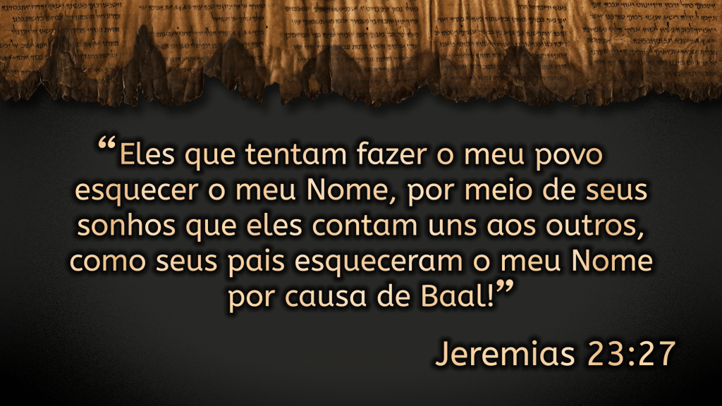 “Eles que tentam fazer o meu povo esquecer o meu Nome, por meio de seus sonhos que eles contam uns aos outros, como seus pais esqueceram o meu Nome por causa de Baal!” Jeremias 23:27